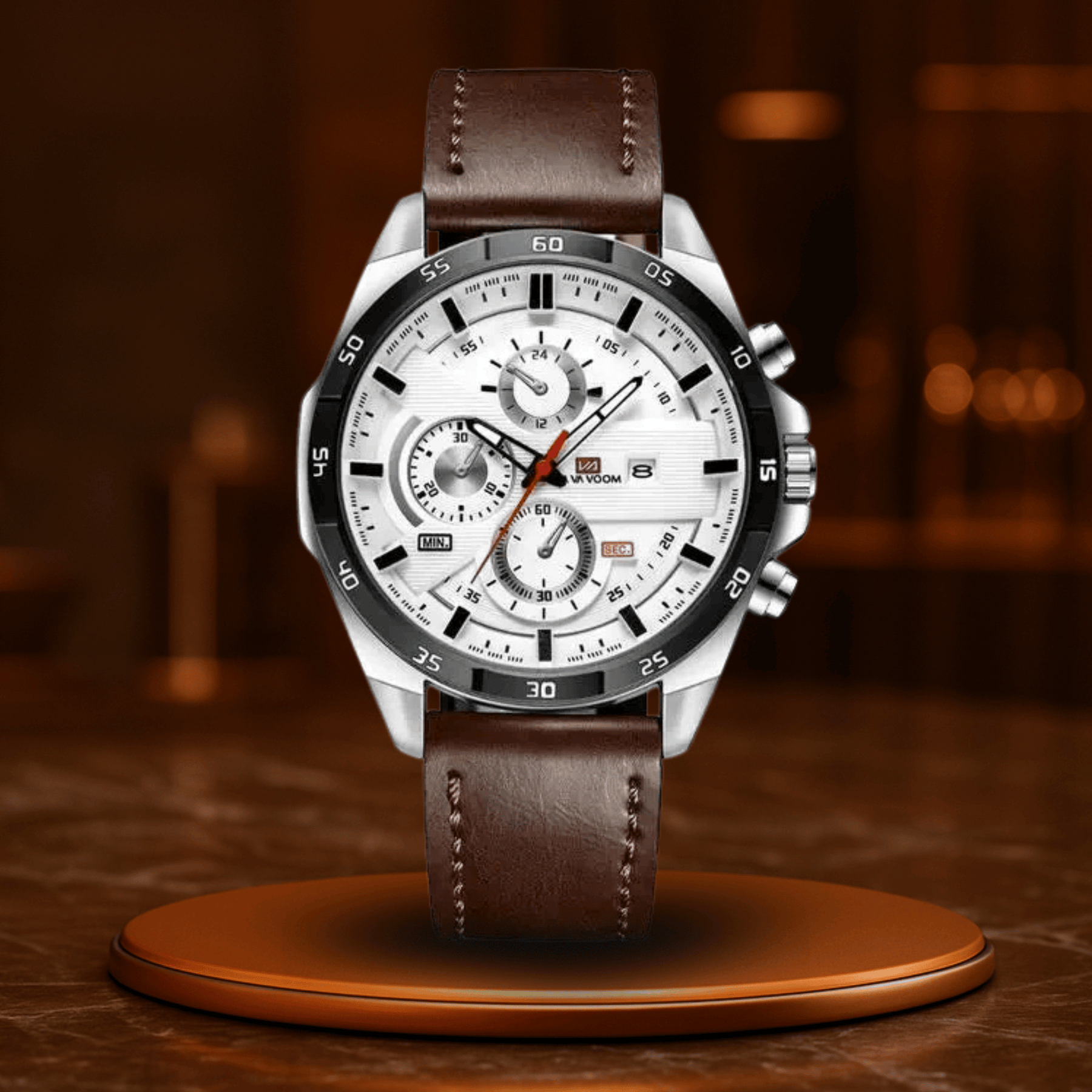 Finezyjny skórzany pasek zapewnia komfort i klasyczny wygląd, podczas gdy czytelne tarcze i organizacja oparta na kalendarzu zapewniają, że możesz śledzić czas nawet w ciemności. Stylowy. Mocny. Wszechstronny.