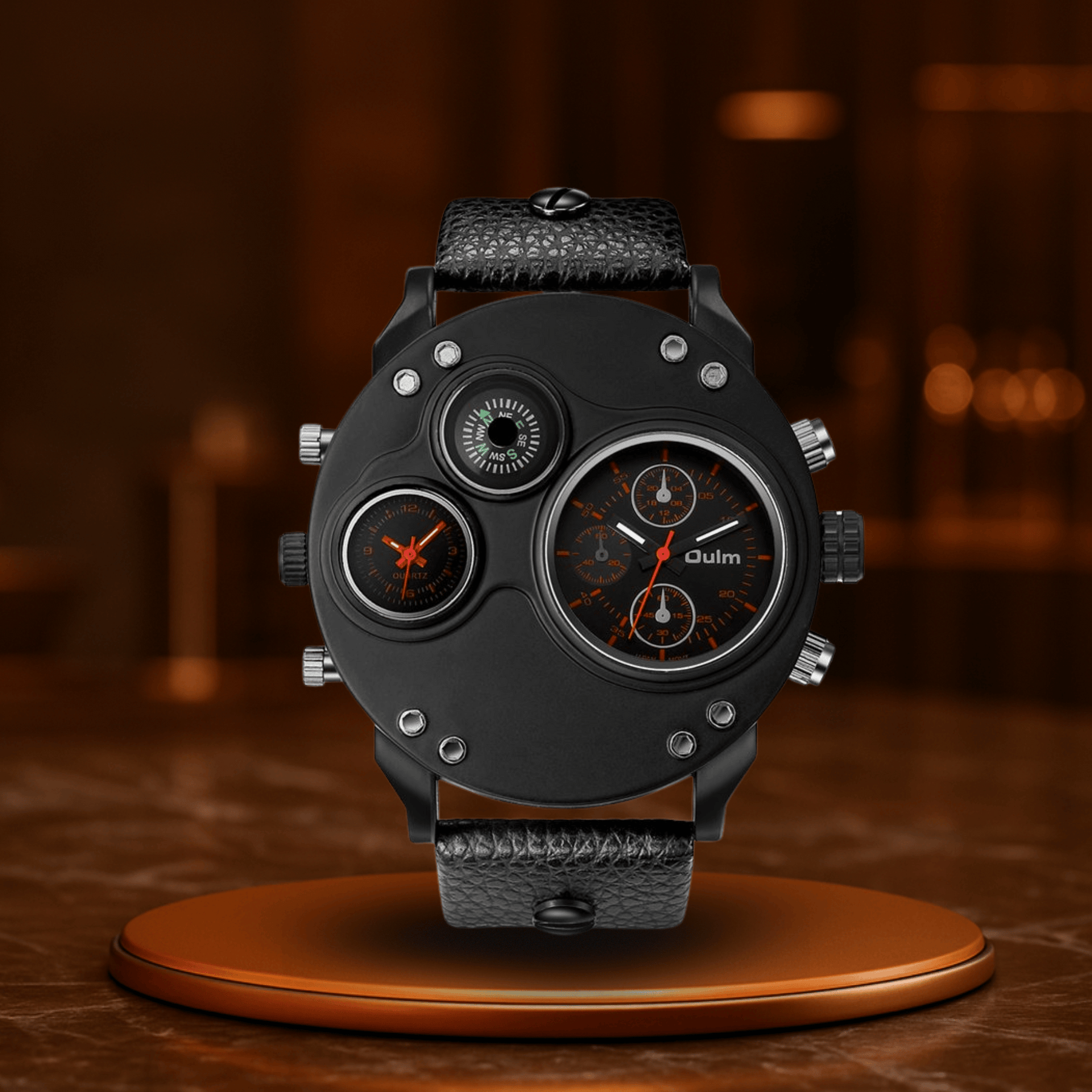 Noir Meridian to nie tylko zegarek – to twoje narzędzie taktyczne w połączonym świecie. Dzięki podwójnym strefom czasowym, potężnej średnicy koperty wynoszącej 53 mm i głębokiemu czarnemu skórzanemu paskowi, wysyła wyraźny sygnał: Jesteś wszędzie u siebie – i zawsze stylowy w drodze.