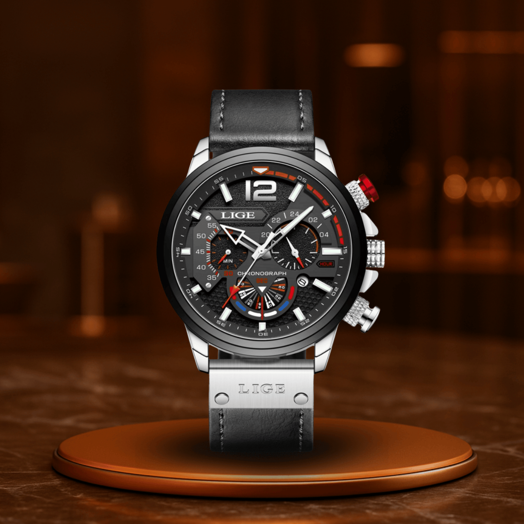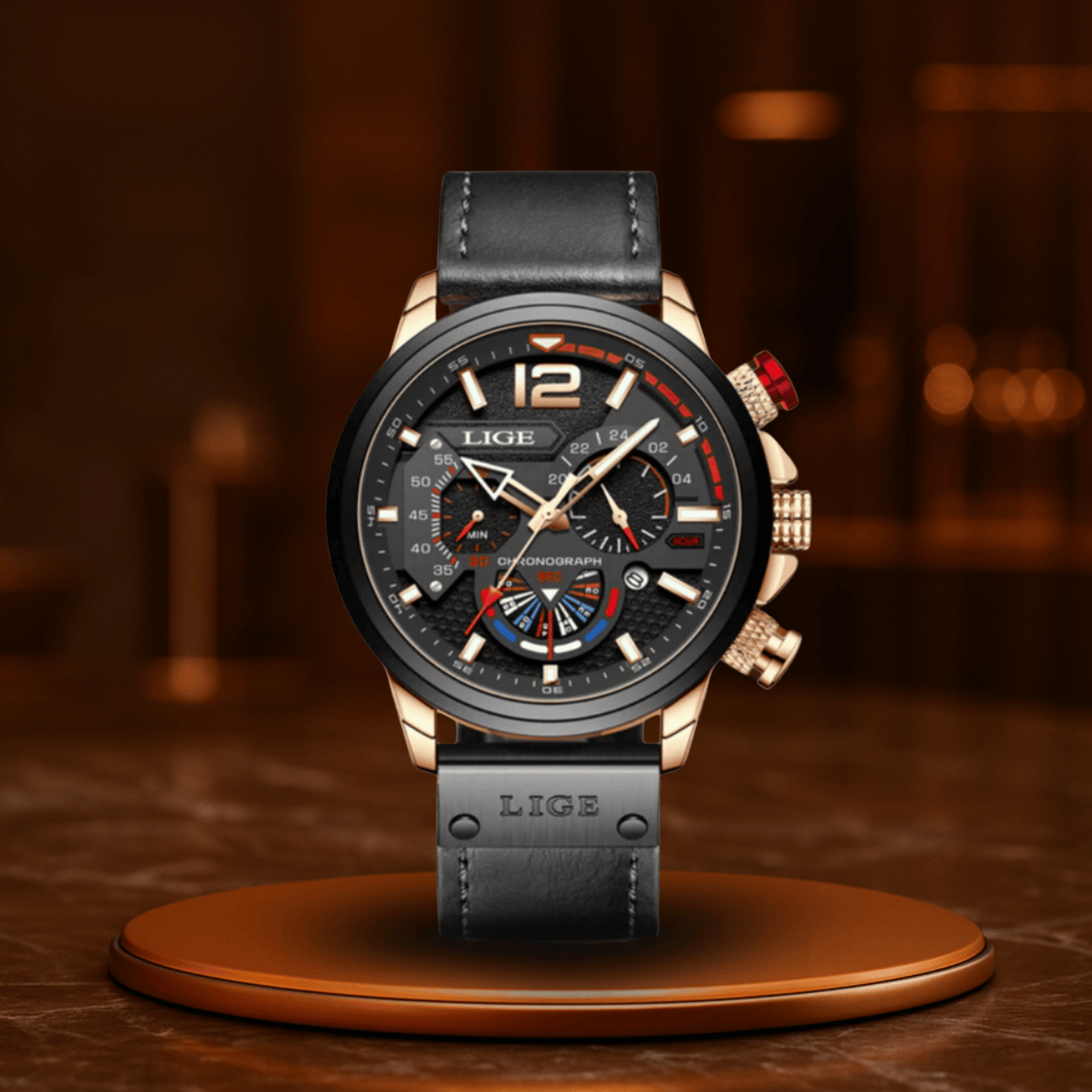 Vanguard Pro to idealny zegarek dla mężczyzny, który nie zna ograniczeń – i nie akceptuje utraty komfortu podczas trudnej przygody. Z dokładnym mechanizmem kwarcowym, uderzającym wyświetlaczem chronografu i wskaźnikiem daty, ten zegarek jest tak solidny, jak i stylowy. Wysokiej jakości skórzany pasek nie tylko gwarantuje komfort, ale także nadaje twojemu nadgarstkowi elegancki wygląd, podczas gdy wodoodporna konstrukcja zapewnia, że ten zegarek pozostaje niezawodny w każdych warunkach.