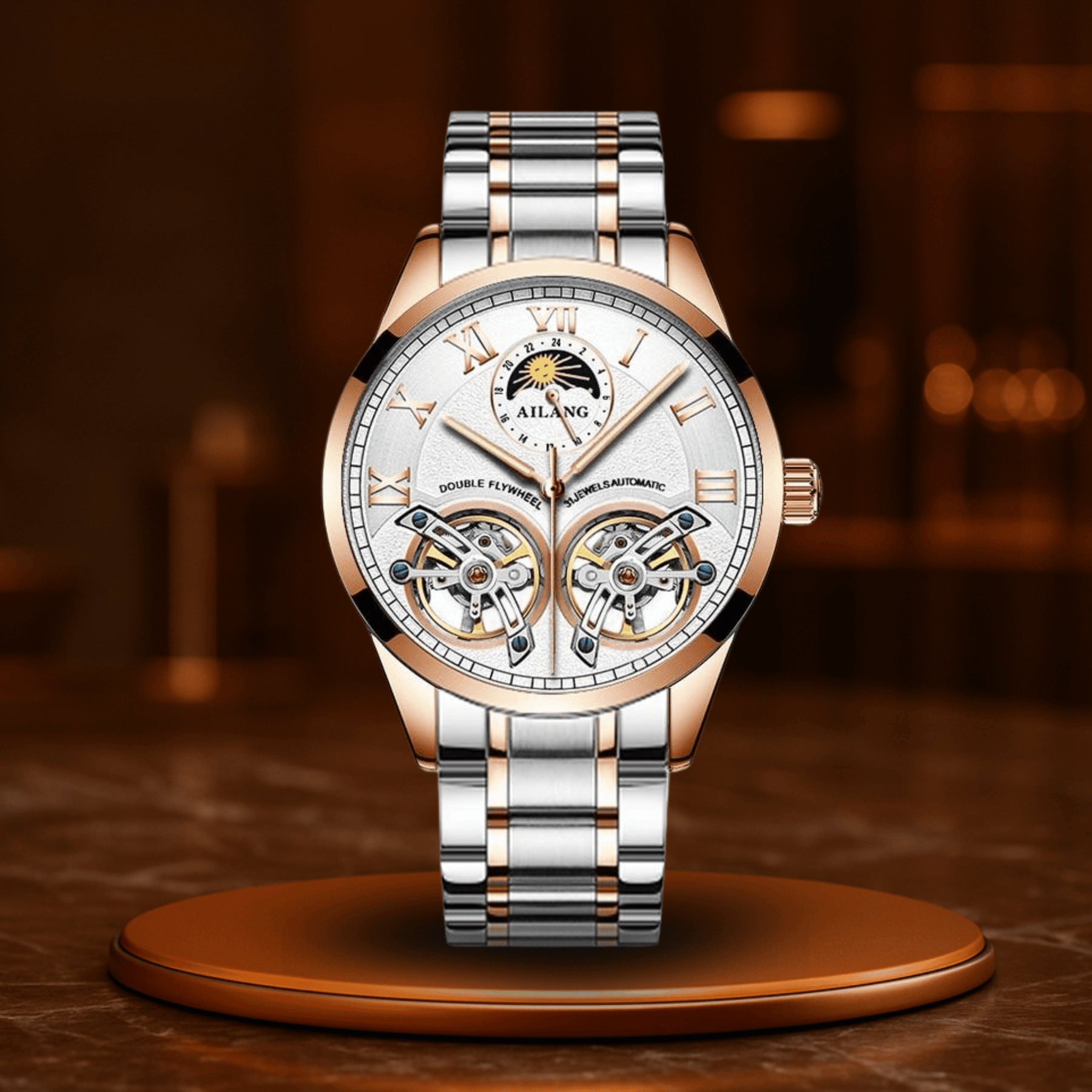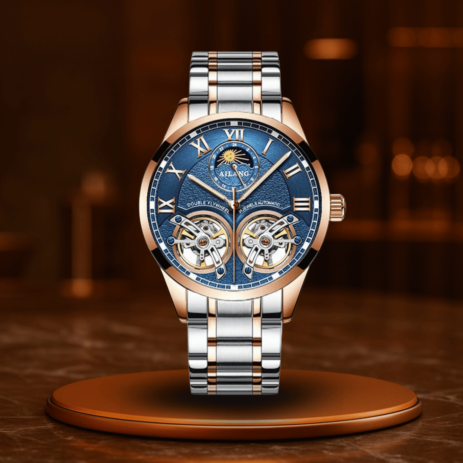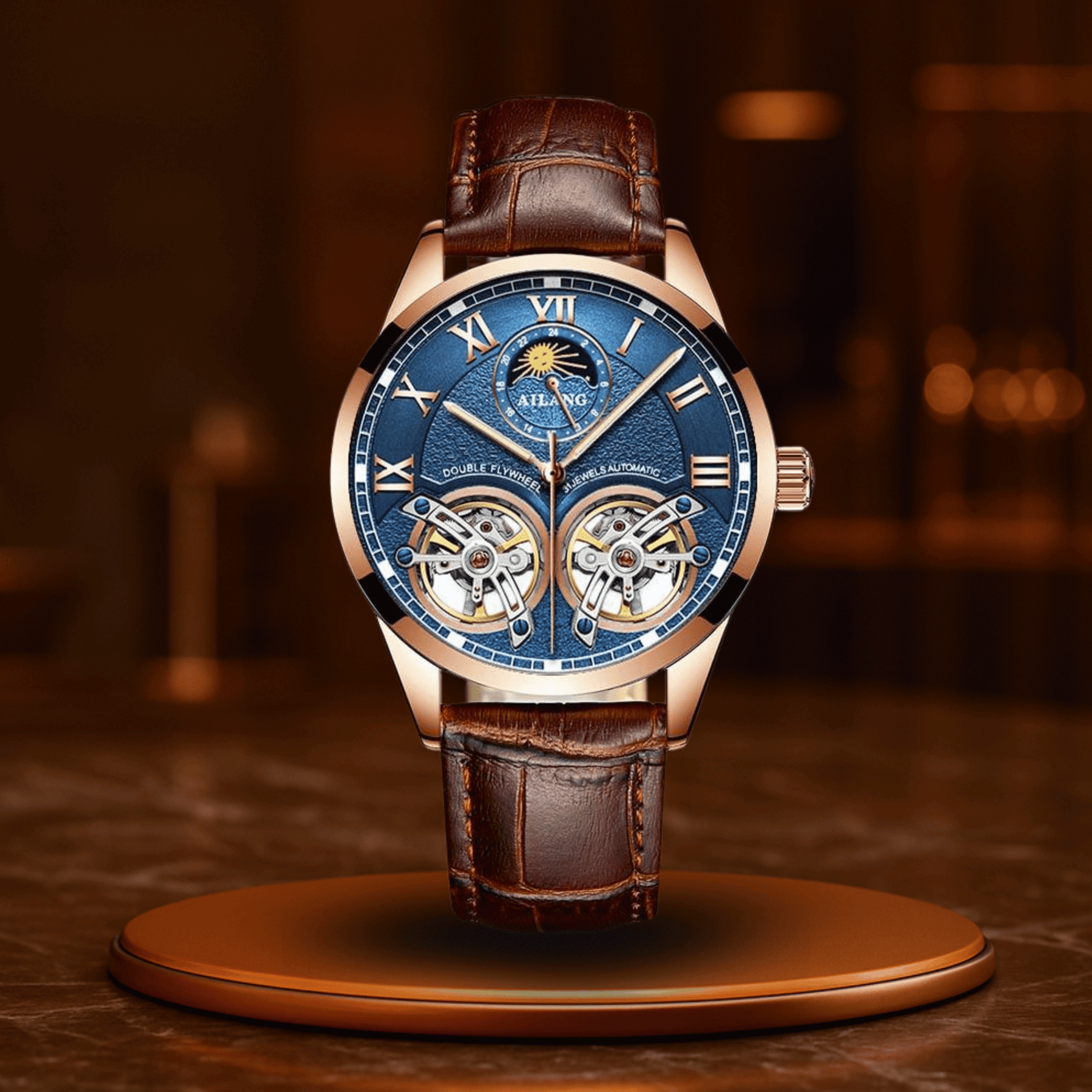 Luksusowy skórzany pasek delikatnie obejmuje nadgarstek, podczas gdy koperta o średnicy 41 mm doskonale równoważy elegancję i obecność. Wyświetlacz faz księżyca? Subtelne nawiązanie do niebios – dla mężczyzn, którzy myślą o więcej niż tylko o spotkaniach.