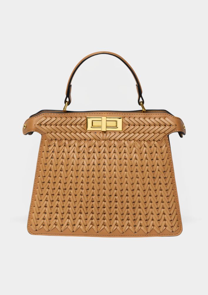 Wykonana z wysokiej jakości wegańskiej skóry, torba oferuje zarówno górny uchwyt dla eleganckiego akcentu, jak i odpinany pasek na ramię dla wygodnego noszenia. Kompaktowy, ale praktyczny rozmiar sprawia, że jest idealna na codzienne potrzeby, podczas gdy plecione detale nadają jej rzemieślniczy charakter.
