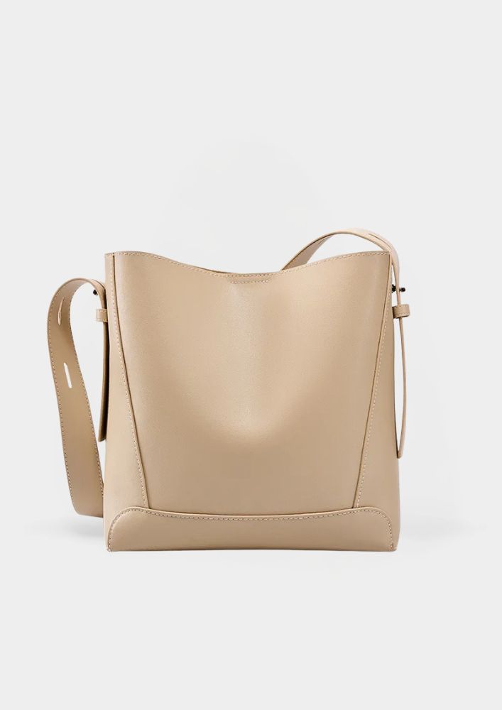 Tine™ – Stylowa torebka na ramię w piaskowym kolorze z paskowym uchwytem