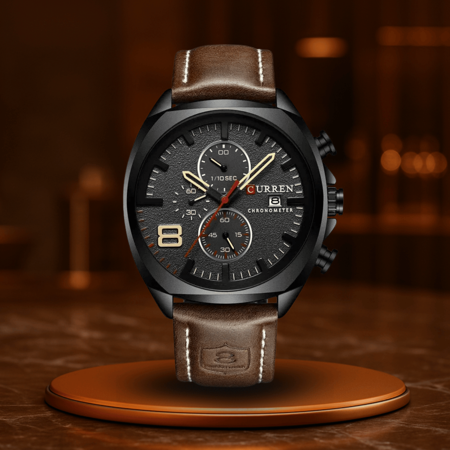 Dowódca – Edycja Taktyczna od Valour Tempus to więcej niż zegarek. To wprowadzenie do klarowności w chaosie i stylu w burzy. Z uderzającą kopertą o średnicy 47 mm, wstrząsoodporną obudową ze stali nierdzewnej i eleganckim skórzanym paskiem, jest stworzony dla mężczyzn, których harmonogramy zmieniają się między misją a spotkaniem.
