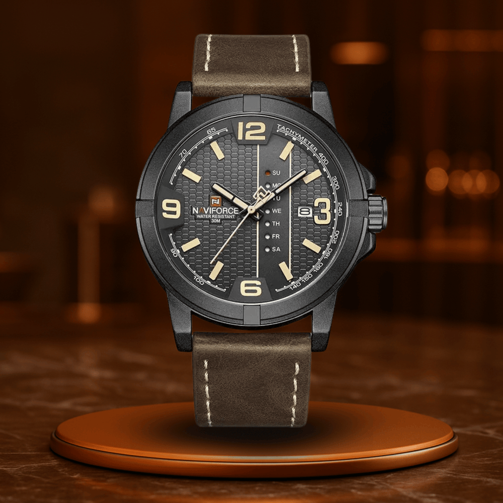 Z wyświetlaczem daty i tygodnia, luminiscentnymi wskazówkami oraz wodoodporną konstrukcją, jest to arcydzieło umiaru – stworzone dla mężczyzn, którzy nie muszą się usprawiedliwiać.
