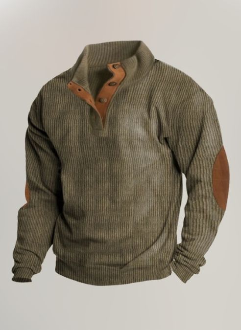 Gdy komfort spotyka elegancję, powstaje Ryszard | Ciepły męski sweter codzienny. Wykonany z miękkiej, przyjemnej w dotyku tkaniny typu corduroy, zapewnia ciepło i swobodę ruchów w każdej sytuacji.